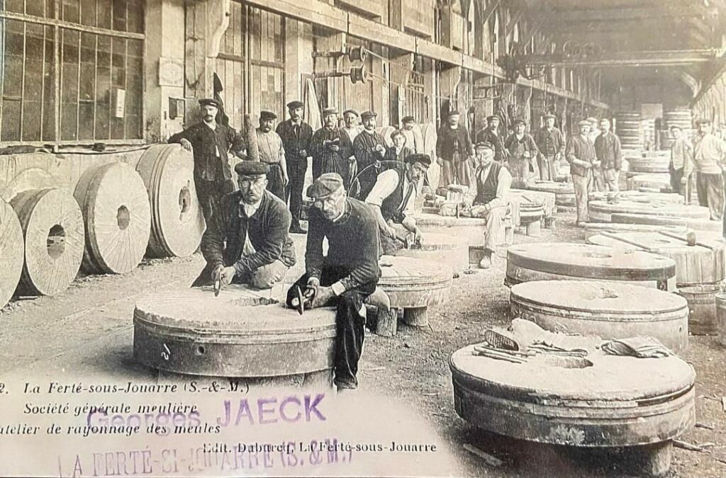 La Ferté s/Jouarre était connu pour avoir un sous-sol riche en silex meunier réputé pour sa dureté. Ce silex a en outre une porosité qui leur a acquis une réputation universelle pour la fabrication de meules à moulins. L’arrivée du chemin de fer en Seine-et-Marne en 1849 étend l’activité des fabricants de meulière sur les deux rives de la Marne et ouvre de plus grands territoires à l’exportation. Le commerce va même jusqu’aux États-Unis, où 5130 meulières sont livrées en 1901. L’importance de cette production était considerable pour l’époque et destiné en grosse partie à l’exportation.